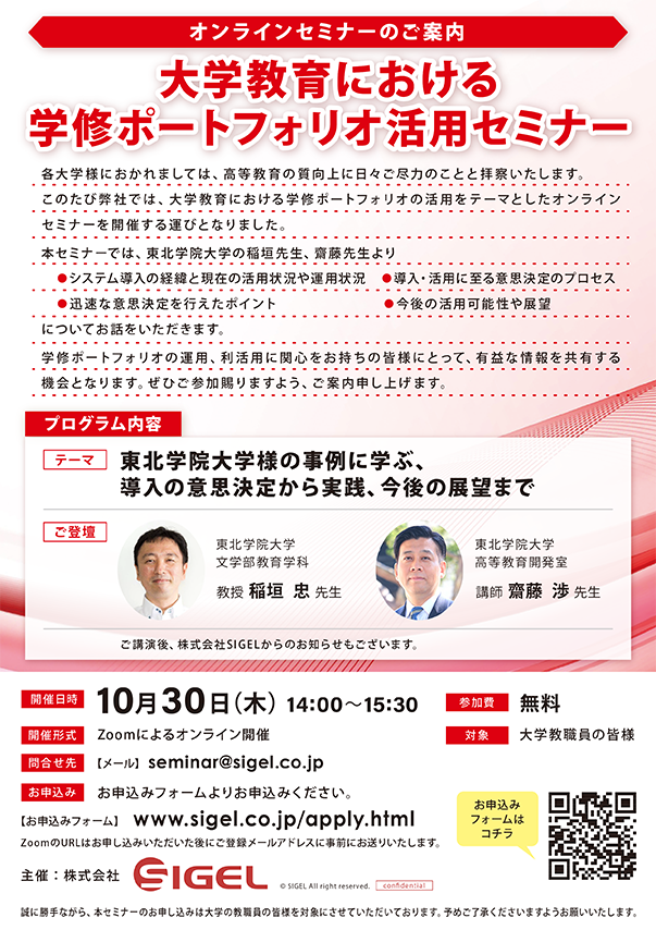 このたび弊社では、大学教育における学修ポートフォリオの活用をテーマとしたオンラインセミナーを開催する運びとなりました。